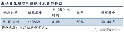 傳統(tǒng)的壓縮空氣儲(chǔ)能是用電動(dòng)機(jī)驅(qū)動(dòng)多級(jí)壓縮機(jī)將空氣壓縮并存于儲(chǔ)氣單元中,在能量釋放時(shí),將高壓氣體從儲(chǔ)氣單元釋放。隨后通入多級(jí)透平膨脹做功,完成空氣壓力能到電能的轉(zhuǎn)換。其特點(diǎn)是容量大(可達(dá)100MW以上)、充放電時(shí)間長、單位建造成本和運(yùn)行成本較低、系統(tǒng)壽命長等。但是由于空氣儲(chǔ)能需要和燃?xì)廨啓C(jī)電站配套使用,效率只能達(dá)到60%左右,因此大大限制了其應(yīng)用范圍,同時(shí),啟動(dòng)時(shí)間較長(僅比火電啟動(dòng)時(shí)間要短)也限制了其應(yīng)用場景。如德國在1978年就建成了290MW裝機(jī)容量的壓縮空氣儲(chǔ)能電站,其充氣時(shí)間為8h,放電時(shí)間為2h,將補(bǔ)燃所消耗的能量算在內(nèi)時(shí)系統(tǒng)效率只有46%。美國在1991年建成的空氣壓縮儲(chǔ)能電站裝機(jī)容量為110MW,充氣時(shí)間為41h,放電時(shí)間為26h,將補(bǔ)燃所消耗的能量算在內(nèi)時(shí)系統(tǒng)效率為54%。