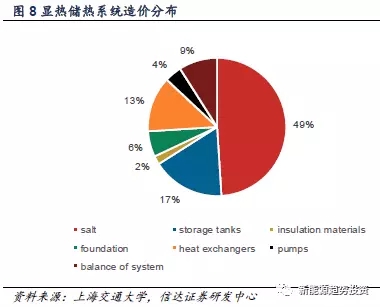 顯熱儲(chǔ)熱是利用材料所固有的熱熔進(jìn)行的熱量儲(chǔ)存形式,其特點(diǎn)是鹽成本占總成本的近一半,而儲(chǔ)熱密度低(0.2GJ/m3),顯熱儲(chǔ)熱的研究時(shí)間最長,成本相對較低,在國外也有少量商業(yè)化應(yīng)用,但是國內(nèi)由于起步晚,還未進(jìn)入大規(guī)模商業(yè)化運(yùn)行階段,實(shí)際上光熱發(fā)電中使用的熔融鹽以及太陽能熱水器其本質(zhì)就是顯熱儲(chǔ)熱。