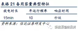 備用容量是指在滿足預(yù)計(jì)負(fù)荷需求以外,針對突發(fā)情況時(shí)為保障電能質(zhì)量和系統(tǒng)安全穩(wěn)定運(yùn)行而預(yù)留的有功功率儲(chǔ)備,一般備用容量需要在系統(tǒng)正常電力供應(yīng)容量的15~20%,且最小值應(yīng)等于系統(tǒng)中單機(jī)裝機(jī)容量最大的機(jī)組容量。在我國,備用容量服務(wù)分為旋轉(zhuǎn)備用、非旋轉(zhuǎn)備用和其他備用。備用容量一般應(yīng)用在發(fā)電機(jī)組在下線到上線的這段時(shí)間內(nèi),放電時(shí)間相對較短,但是要求有較大的功率來將儲(chǔ)存的能量在短時(shí)間內(nèi)釋放出去,因此是功率型應(yīng)用。