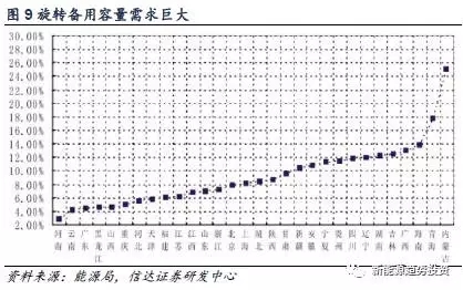 在現(xiàn)有的政策及技術(shù)條件下,我們認(rèn)為低成本技術(shù)將會(huì)占據(jù)先發(fā)優(yōu)勢,而剛需應(yīng)用場景為各儲(chǔ)能技術(shù)大幅降低成本帶來契機(jī)。在技術(shù)端,國內(nèi)在抽水蓄能、鉛炭電池及鋰電池這三方面技術(shù)積累最多,應(yīng)用時(shí)間最長,使用規(guī)模最大,因此是應(yīng)用首選。而在應(yīng)用場景端,由于政策標(biāo)準(zhǔn)及補(bǔ)貼的缺失,目前要大規(guī)模使用儲(chǔ)能,一是技術(shù)本身比較成熟,成本較低,二是應(yīng)用場景有剛需,同時(shí)本身有補(bǔ)貼可以覆蓋這部分成本。從這個(gè)角度看,新能源發(fā)電側(cè)將是儲(chǔ)能爆發(fā)的起點(diǎn),由于風(fēng)光出力波動(dòng)大的特性使得電網(wǎng)中新能源的比例不超過15%,而以目前風(fēng)光電站裝機(jī)量增速以及“三北”地區(qū)棄風(fēng)棄光的狀況來看,風(fēng)光配儲(chǔ)能已經(jīng)到了不得不裝的地步了。一旦通過儲(chǔ)能平滑風(fēng)光出力曲線,則電網(wǎng)無需再為發(fā)電側(cè)的波動(dòng)擔(dān)憂,新能源消納問題也將得到緩解。此外鋰電池隨著新能源汽車數(shù)量的增加而快速發(fā)展,其成本也在快速下降,隨著新能源汽車的規(guī)模進(jìn)一步擴(kuò)大,鋰電池的成本將有望持平甚至低于鉛炭電池,同時(shí)新能源汽車本身也可看作移動(dòng)式儲(chǔ)能,未來有著巨大的發(fā)展?jié)摿Α?