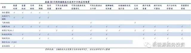 我們將各種儲(chǔ)能技術(shù)根據(jù)其不同的特性與應(yīng)用場景的需求進(jìn)行配對,得到不同儲(chǔ)能技術(shù)最適用的應(yīng)用場景,隨著技術(shù)的進(jìn)步,儲(chǔ)能技術(shù)能適用的場景也會(huì)發(fā)生改變。如飛輪儲(chǔ)能分為能量型和功率型,能量型飛輪儲(chǔ)能目前放電時(shí)間還較短,實(shí)際應(yīng)用價(jià)值不高,但是如果放電時(shí)間可以提升到時(shí)分級(jí),則能量型飛輪儲(chǔ)能也能在可再生能源出力平滑等應(yīng)用場景中有一席之地。