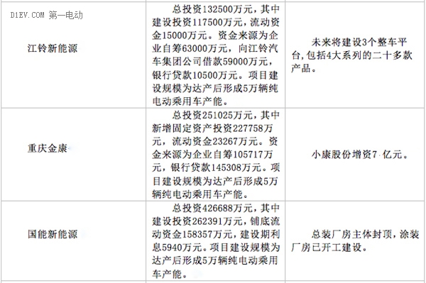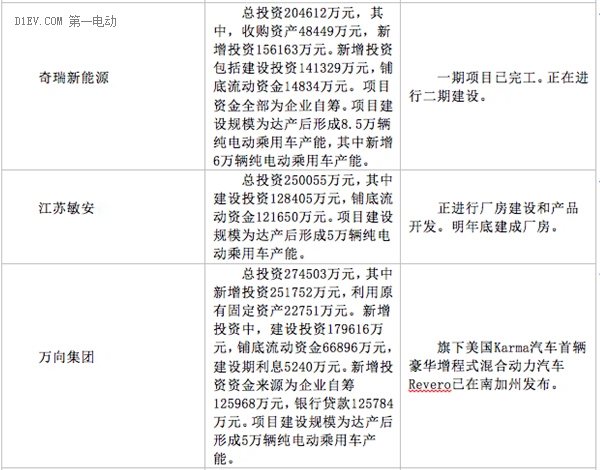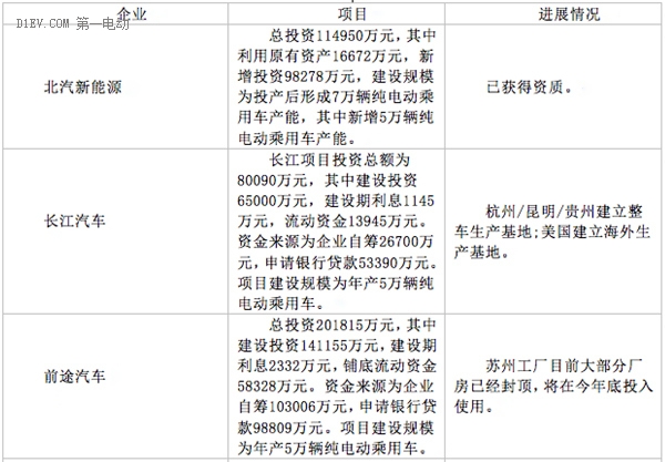 15家企業(yè)新建純電動(dòng)乘用車(chē)項(xiàng)目進(jìn)展情況