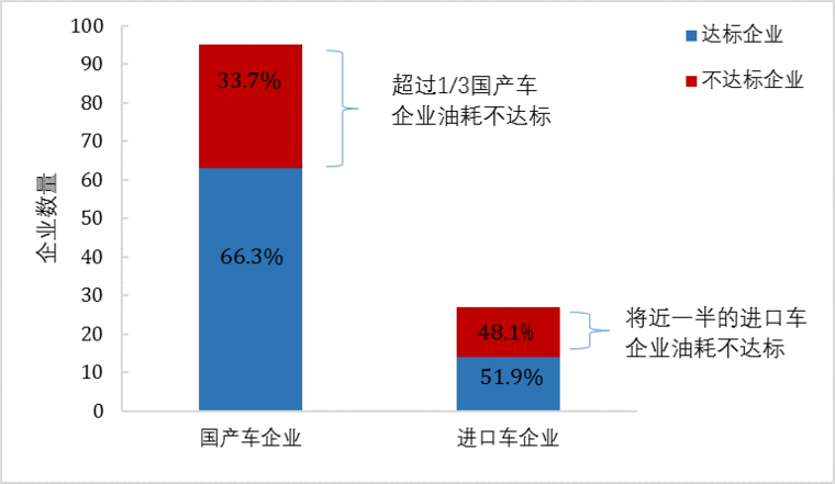 2016年超過(guò)1/3的國(guó)產(chǎn)車(chē)企業(yè)與近一半的進(jìn)口車(chē)企業(yè)油耗不達(dá)標(biāo)