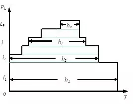 分段競價機制把電能按連續(xù)生產(chǎn)或連續(xù)消費的時間分段,然后按段進(jìn)行平衡和買賣,形成出清價。在發(fā)電側(cè)單邊競價的情況下,把預(yù)測的負(fù)荷曲線按連續(xù)生產(chǎn)(或消費)的時間分為l1,l2,…,l…,LP段,相應(yīng)的持續(xù)時間為h1,h2,…,hl…,hP,如圖1所示。