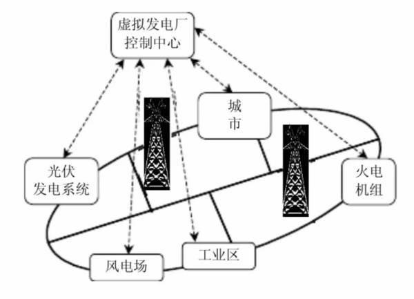 從技術層面講,虛擬電廠并未改變每個分布式能源并網(wǎng)的方式,而是通過先進的控制、計量、通信等技術聚合分布式電源、可控負荷、儲能系統(tǒng)、電動汽車等不同類型的分布式電源,并通過更高層面的軟件構架實現(xiàn)多個分布式能源的協(xié)調優(yōu)化運行,使其能夠參與電力市場和輔助服務市場運營,實現(xiàn)實時電能交易,同時優(yōu)化資源利用,大大提高供電可靠性。