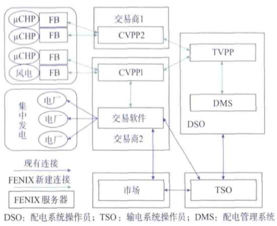FENIX(Flexibleelectricity network to integrate the expected energy solution)項目是由來自英國、西班牙、法國等8個國家的20個研究機構和組織,在歐盟第6框架計劃下與2005-2009年間實施的VPP研究和試點項目,其目的在于通過將大型虛擬電廠(LSVPP)和分布式能源進行管理,來最大化地提升DER(分布式能源)對電力系統(tǒng)的貢獻。