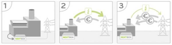 另外一種業(yè)務模式是在生物燃氣熱電聯(lián)產的機組(CHP)安裝遠程控制裝置NextBox,CHP的靈活性可以提供給電力平衡市場;平時CHP會收到備用費補償,這時CHP正常運行不需要作出調整;當電網(wǎng)過載時,CHP可以在幾分鐘內減少或停止出力。CHP運營商將從Next獲得額外的調頻服務費。