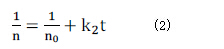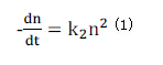 n表示在時間t時,單位體積溶液所含的膠體粒子數,k2為二次反應速率常數(second-order rate constant)。
