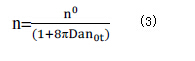 由于團聚使得溶液中的膠體粒子濃度減少,因此以表示為負號。當t=0,n=n0, 積分上式可得: