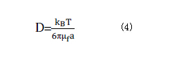 a為膠體粒子半徑,D為布朗擴散系數,假設為球形粒子,由愛因斯坦擴散定律,可得:
