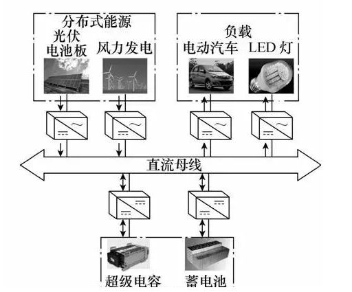 圖1 含混合儲能系統(tǒng)的直流微網(wǎng)典型結(jié)構(gòu)圖