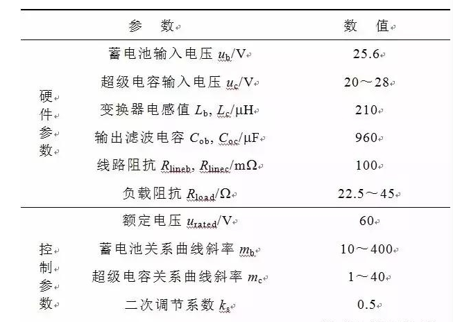 表1 混合儲能系統(tǒng)實(shí)驗(yàn)平臺參數(shù)