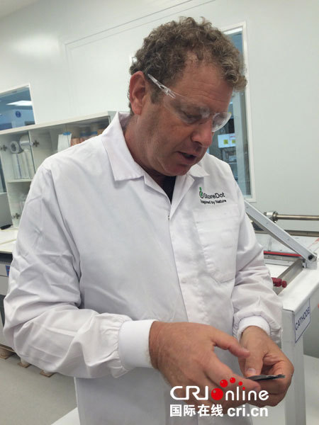 StoreDot公司生產(chǎn)的有機(jī)合成物產(chǎn)品。(攝影 孫伶俐)