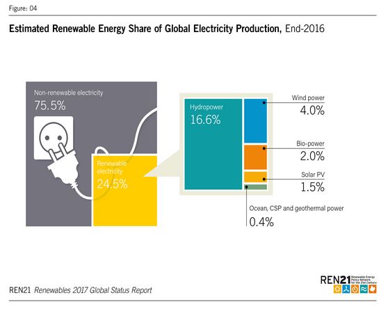 REN21在最新報告《2017年全球再生能源狀態(tài)報告》(GSR2017:Renewable 2017 Global Status Report)中指出,2016年,全球共新增了161GW的再生能源發(fā)電設(shè)備,其中47%為太陽能,34%為風力。至2016年底,全球再生能源累計裝機量達到2,017GW。累計裝機量最高的是中國,達258GW;美國次之,為145GW。