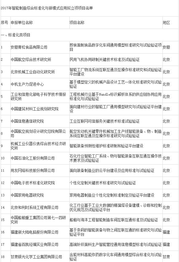 附件:2017年智能制造綜合標(biāo)準(zhǔn)化與新模式應(yīng)用擬立項(xiàng)項(xiàng)目名單