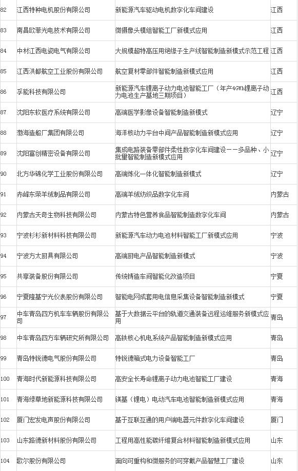 樂凱膠片(高性能鋰離子電池隔膜智能工廠項(xiàng)目,是基于該項(xiàng)發(fā)明搭建的智能工廠)、多氟多(新能源汽車動(dòng)力電池智能化車間建設(shè)項(xiàng)目)、湖南科霸(新能源汽車動(dòng)力電池智能化車間建設(shè)項(xiàng)目)富朗特、(新型高能鋰離子電池智能制造項(xiàng)目)、寧波杉杉(新能源汽車動(dòng)力電池材料智能工廠新模式應(yīng)用項(xiàng)目)、青海時(shí)代新能源(高安全長壽命鋰離子動(dòng)力電池智能工廠建設(shè)項(xiàng)目)、青海綠草地新能源(鎂基(鋰電)電動(dòng)汽車電池智能制造新模式應(yīng)用項(xiàng)目)、陜西德飛新能源(節(jié)能與新能源汽車高性能動(dòng)力電池智能制造新模式)、欣旺達(dá)、巴莫科技、天津力神(新一代電動(dòng)汽車動(dòng)力電池智能工廠建設(shè)項(xiàng)目)、微宏動(dòng)力(數(shù)字化車間項(xiàng)目)、湖北金泉新材料(高比能鋰電子動(dòng)力電池智能工廠項(xiàng)目)、孚能科技。