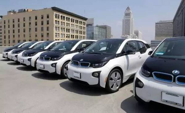 洛杉磯警局已向車隊(duì)增加了100輛電動(dòng)車,圖為寶馬i3電動(dòng)車停在洛杉磯警察局的頂樓停車場。