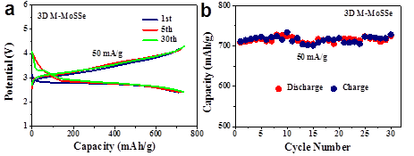 圖2 MoS2/MoSe2正極的鋰空氣電池電化學性能