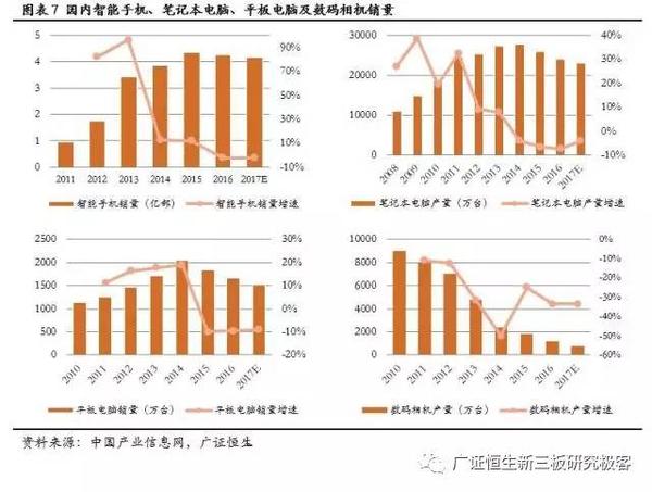消費類電子產(chǎn)品是鋰電池自商用以來最主要的應(yīng)用領(lǐng)域,主要包括手機、筆記本電腦、平板電腦、數(shù)碼相機等傳統(tǒng)3C數(shù)碼類需求,以及網(wǎng)絡(luò)設(shè)備、游戲設(shè)備、導(dǎo)航設(shè)備、可穿戴設(shè)備、電動工具等新興需求。2014年前后,由于市場趨于飽和,傳統(tǒng)3C數(shù)碼類電子產(chǎn)品的消費量均出現(xiàn)不同程度的下滑;而新興需求端,如導(dǎo)航終端設(shè)備、智能可穿戴設(shè)備的市場規(guī)模則呈現(xiàn)較快擴張的態(tài)勢;綜合預(yù)計消費類鋰電池銷量增速將保持在5%以上。