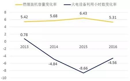 中國(guó)的能源規(guī)劃中包含了調(diào)整能源結(jié)構(gòu)的目標(biāo),中央政府也要求地方政府根據(jù)當(dāng)?shù)毓┬栊蝿?shì)和國(guó)家的能源規(guī)劃核準(zhǔn)煤電項(xiàng)目。但結(jié)果卻是,各省之間展開煤電項(xiàng)目的建設(shè)競(jìng)賽,電網(wǎng)公司分配給電廠的發(fā)電計(jì)劃指標(biāo)一再縮減,煤電機(jī)組的利用小時(shí)數(shù)也不斷下降。2016年,中國(guó)6 MW及以上火電廠的設(shè)備利用小時(shí)數(shù)降至近年來(lái)的最低水平(圖4)。