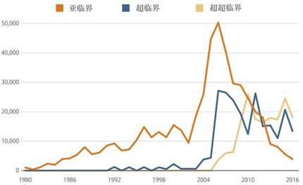 圖3 中國(guó)每年新增的燃煤發(fā)電裝機(jī)(MW)及技術(shù)分類