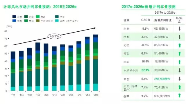 中國儲(chǔ)能網(wǎng)訊:2017年二季度風(fēng)電市場展望:全球風(fēng)電新增容量十年預(yù)測上調(diào)10.8GW,未來五年內(nèi)將實(shí)現(xiàn)上調(diào)預(yù)測容量的60%。
