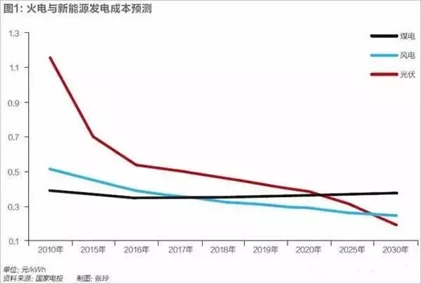 近年來(lái),風(fēng)、光發(fā)電的技術(shù)進(jìn)步很快。單體風(fēng)機(jī)的功率不斷增大,適應(yīng)低風(fēng)速發(fā)電的風(fēng)機(jī)已推廣應(yīng)用,太陽(yáng)能電池和組件的轉(zhuǎn)換效率持續(xù)改進(jìn)。與此同時(shí),新能源的發(fā)電成本也在快速下降。風(fēng)電設(shè)備和光伏組件的價(jià)格,在過(guò)去的五年里下降幅度分別超過(guò)了20%和60%。美國(guó)風(fēng)電長(zhǎng)期購(gòu)電協(xié)議價(jià)格已與化石能源發(fā)電達(dá)到同等水平,德國(guó)新增的新能源電力基本實(shí)現(xiàn)與傳統(tǒng)能源平價(jià)。我國(guó)部分地區(qū)新能源的價(jià)格已經(jīng)與煤電價(jià)格相當(dāng),預(yù)計(jì)到2030年,光伏發(fā)電成本可以達(dá)到0.2元/千瓦時(shí),風(fēng)電達(dá)到0.22元/千瓦時(shí)(見(jiàn)圖表1)。
