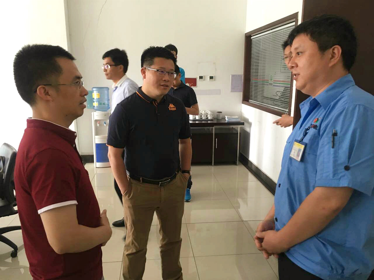 中國(guó)科學(xué)院電工研究所儲(chǔ)能課題組組長(zhǎng)陳永翀(左一)、中國(guó)化學(xué)與物理電源行業(yè)協(xié)會(huì)儲(chǔ)能應(yīng)用協(xié)會(huì)秘書長(zhǎng)劉勇(左二)與力神動(dòng)力電池系統(tǒng)有限公司研究院副院長(zhǎng)游峰(右一)討論交流