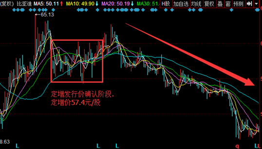 自2016年7月22日增發(fā)股份上市以來,比亞迪股價(jià)自61.13元/股的價(jià)格一路顛沛向下,原本6%的溢價(jià)難以抵擋下跌的來寫。比亞迪的股價(jià)自2016年11月14日起便已跌破57.4元/股的定增價(jià)格于2017年1月6日創(chuàng)階段性歷史新低46.5元/股,此時(shí)相對于比亞迪的定增價(jià)格折價(jià)近20%。20%的折價(jià)率相對于距半年之久的解禁期似乎還有很多轉(zhuǎn)圜的空間。近期股價(jià)走勢漸穩(wěn)定,但定增機(jī)構(gòu)仍承擔(dān)著10%的折價(jià)損失,何時(shí)能重回定增價(jià)之上受市場和公司業(yè)績雙重考驗(yàn)。