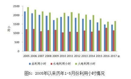 1-5月份,全國發(fā)電設(shè)備累計平均利用小時1479小時,同比降低5小時。