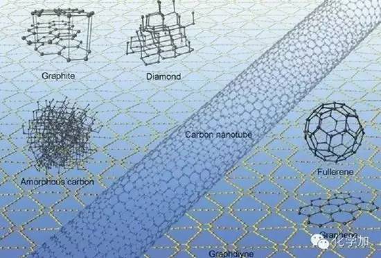 碳是看似具有無限可能的元素。這是因為其獨特的電子結構,可以有很多種成鍵方式,可以產(chǎn)生具有不同性質的一系列材料。碳具有多種同素異形體,如石墨、金剛石(鉆石)、富勒烯、碳納米管、石墨烯、玻璃碳等,其中石墨在壓力下可以轉變成超硬的金剛石。