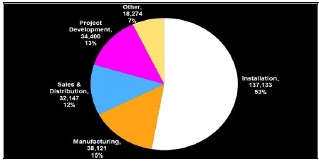 2016年美國(guó)太陽能行業(yè)就業(yè)分布圖