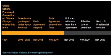 美國(guó)總統(tǒng)唐納德?特朗普決定本國(guó)退出《巴黎氣候變化協(xié)定》,這反而讓美國(guó)太陽能和風(fēng)能產(chǎn)業(yè)的清潔能源政策前景更不明朗。按計(jì)劃,美國(guó)正式退出協(xié)定的時(shí)間大概是2020年。因此退出協(xié)定可能使氣候變化升級(jí)為2020年美國(guó)總統(tǒng)競(jìng)選的重要問題,并促使政界兩極分化。短期內(nèi),州政府的政策和聯(lián)邦政府的稅收優(yōu)惠將支持風(fēng)能和太陽能的需求。