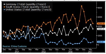 美國(guó)制造商Suniva運(yùn)用1974年貿(mào)易法中的“201條款”提起貿(mào)易申訴,指控美國(guó)進(jìn)口的硅基太陽能電池板對(duì)其造成巨大受害。這一貿(mào)易案可能被美國(guó)政府利用,幫助緩解中國(guó)對(duì)進(jìn)口美國(guó)供應(yīng)多晶硅的限制。如果美國(guó)國(guó)際貿(mào)易委員會(huì)判定Suniva的申訴有法律效力,特朗普就會(huì)決定拿出何種最終行動(dòng)。中國(guó)對(duì)進(jìn)口美國(guó)多晶硅的關(guān)稅壓制了REC Silicon和Hemlock Semiconductor等美國(guó)多晶硅供應(yīng)商的需求。