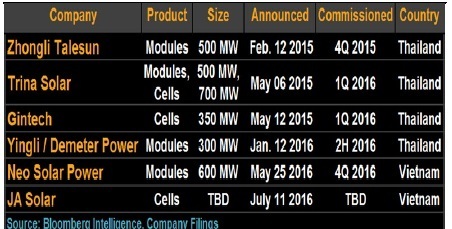 越南和泰國(guó)新開的太陽能模塊組件/電池生產(chǎn)廠