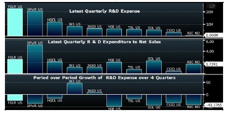 18、在削減成本以前,F(xiàn)irst Solar和SunPower的科研投入最高