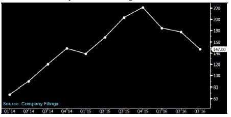 由于購(gòu)買電腦的協(xié)議價(jià)下跌,美國(guó)用于公用事業(yè)供電的太陽能需求增長(zhǎng)放緩。這可能影響美國(guó)公用事業(yè)項(xiàng)目風(fēng)險(xiǎn)敞口高的公司,封殺他們2017年擴(kuò)大市場(chǎng)份額的機(jī)會(huì)。First Solar和SunPower都屬于此類公司(這類項(xiàng)目2016年創(chuàng)造的營(yíng)業(yè)收入占全美太陽能公司總收入的85%)。