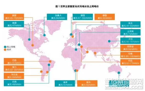 從2015年開始,全球范圍內(nèi)的可再生能源項(xiàng)目,特別是光伏發(fā)電與海上風(fēng)電招標(biāo)的低價(jià)頻出,風(fēng)電光伏低至50美元/千度電的水平,大幅低于了之前的預(yù)期,從而大大激發(fā)了平價(jià)遐想(圖1)。在世界的很多地方,包括南美、中東等非歐美國家,招標(biāo)政策大幅擠壓了生產(chǎn)商的利潤邊際,最終的中標(biāo)價(jià)格都與通常認(rèn)為的煤電與核電的度電成本可比。基于典型項(xiàng)目的長(zhǎng)期平準(zhǔn)化成本(LCOE)的測(cè)算,通常也會(huì)顯示這一點(diǎn)。2008年算起,光伏的發(fā)電成本下降了80%,而風(fēng)電也有30%以上。