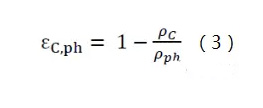 其中,mE為單位面積內(nèi)的電極片重量,mC為單位面積內(nèi)的集流體重量,hE為電極片厚度,hC為集流體厚度。而壓實(shí)密度與極片孔隙率相關(guān),物理上的涂層孔隙率εc,ph可由式(3)計(jì)算,其含義為顆粒內(nèi)部的孔隙和顆粒之間的孔隙在涂層的體積分?jǐn)?shù):