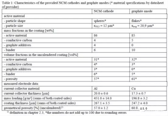 表1 實(shí)驗(yàn)用正負(fù)極極片參數(shù)