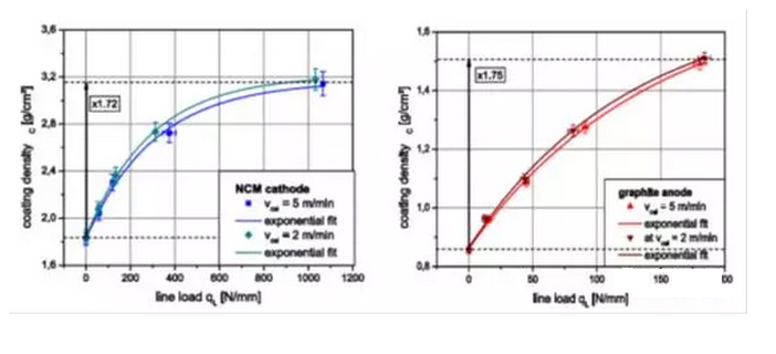 圖4 線載荷與正負(fù)極極片涂層壓實(shí)密度的關(guān)系