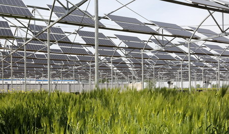 所謂農(nóng)光互補,就是將光伏發(fā)電與生態(tài)種植有機結合,通過在上方布置太陽能光伏方陣,下方種植各種適宜農(nóng)作物的方式,有效提升土地立體綜合利用效率,實現(xiàn)光伏發(fā)電和農(nóng)業(yè)生產(chǎn)雙贏,具有明顯的經(jīng)濟和社會效益。“在開發(fā)綠色能源的同時,全力打造全新生態(tài)旅游工程,旨在改善地方環(huán)境,實現(xiàn)地方經(jīng)濟、社會的可持續(xù)性發(fā)展?!必撠熢擁椖繀f(xié)調(diào)的灌云縣委負責人和農(nóng)業(yè)生產(chǎn)的豐愷農(nóng)業(yè)科技園負責人為項目描繪了這樣的前景。