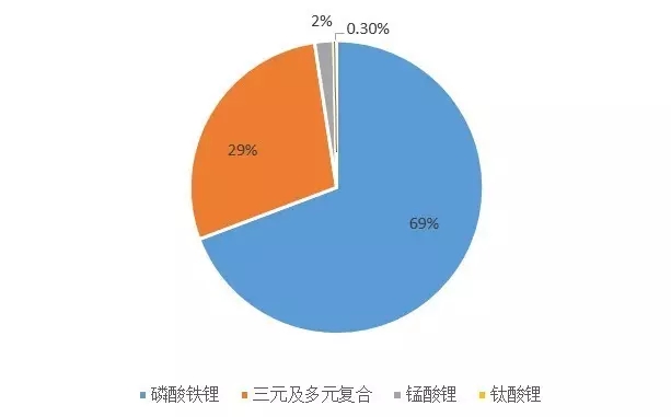 數(shù)據(jù)顯示,相比2015年,2016年磷酸鐵鋰、錳酸鋰、鈦酸鋰動力電池的配套量占比均有所上漲,分別為5%、1%和1.7%左右,而三元電池的配套量占比則下降了8%左右。
