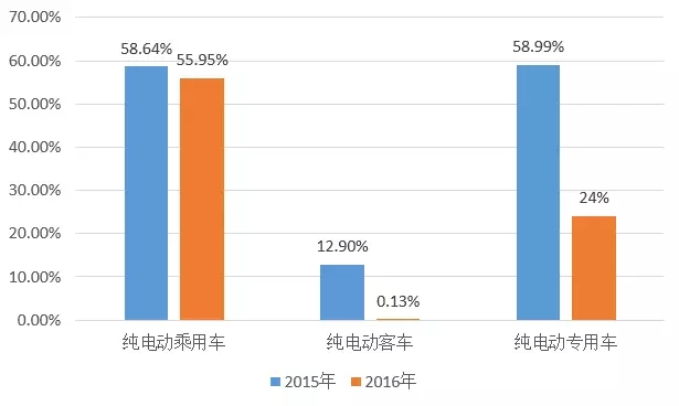 實際上,三元材料電池的配套量占比降低,與2016年初政府暫停三元鋰電池客車列入新能源汽車推廣目錄有著直接關(guān)系。數(shù)據(jù)顯示,2015年三元材料電池在純電動客車上的配套量占比達(dá)12.9%,而到2016年時,僅有0.13%;配套量從2015年的1.18GWh銳減到僅有0.02GWh。