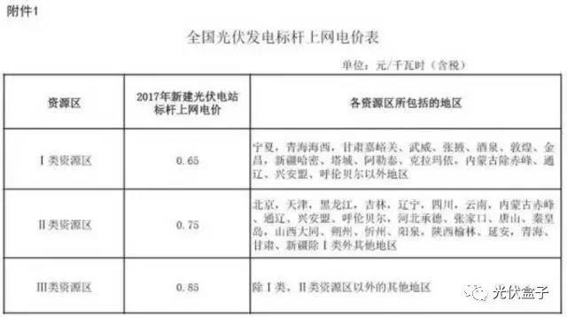 注意:以上價格針對在2017年6月30日之后并網(wǎng)的光伏電站,自發(fā)自用余額上網(wǎng)的分布式還是0.42元/度。