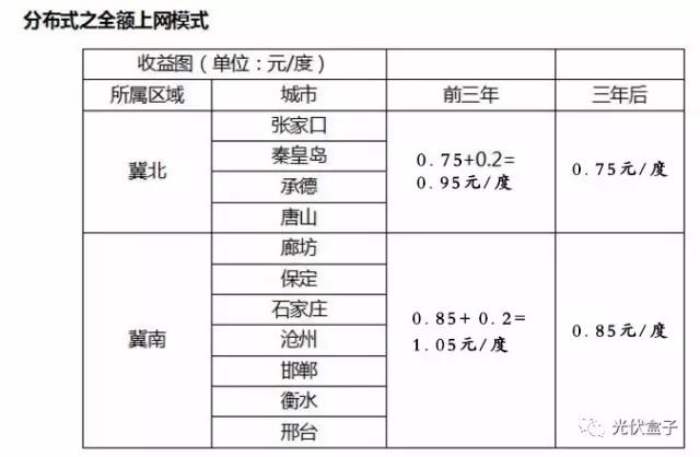 注釋:0.42為國家補貼,補貼年限20年;0.2為河北省補貼,補貼年限3年。