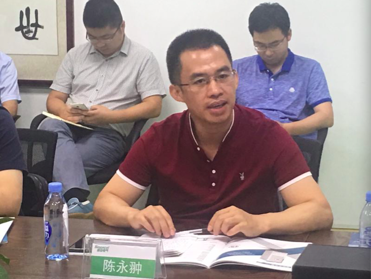 盛弘電氣副總經(jīng)理盛劍明向調(diào)研團(tuán)代表介紹公司產(chǎn)品情況