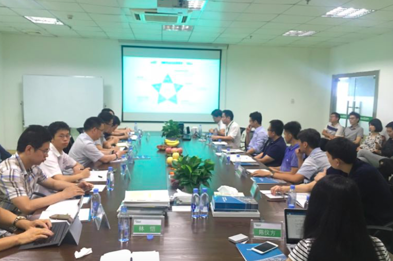 盛弘電氣副總經(jīng)理盛劍明、副總經(jīng)理肖學(xué)禮、產(chǎn)品總監(jiān)劉北、研發(fā)總監(jiān)范小波、海外新能源負(fù)責(zé)人張鈞衡接待了來訪的調(diào)研團(tuán)。
