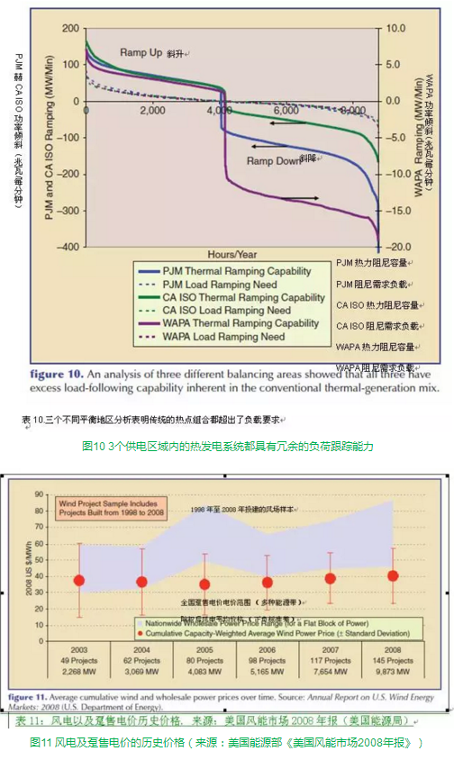 次小時(低于1小時)需求側(cè)管理和此小時發(fā)電調(diào)度為常規(guī)發(fā)電機(jī)組實現(xiàn)機(jī)動性能提供了便利。在某些區(qū)域,只允許按照以小時為單位進(jìn)行調(diào)節(jié),不能充分發(fā)揮現(xiàn)有的彈性,但并不是因為發(fā)電機(jī)組不具備這樣的性能,而是當(dāng)?shù)氐氖袌鲆?guī)則決定的。例如,美國的“大區(qū)域輸電管理”系統(tǒng)(RTOs)已經(jīng)根據(jù)次小時市場需求成功運行了多年。風(fēng)電的集群化進(jìn)一步降低了大規(guī)模風(fēng)電的波動性,凈負(fù)荷強(qiáng)化了非線性波動,而調(diào)節(jié)性能則有線性提高。