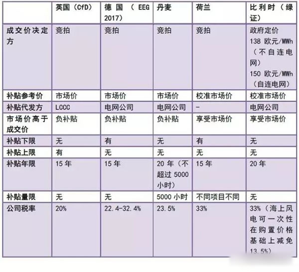 對(duì)于一項(xiàng)新技術(shù)的扶持往往是一整套體系,以海上風(fēng)電為例,政策扶持涉及到較多方面,如整個(gè)裝機(jī)目標(biāo)的確定、選址方式、電網(wǎng)連接、供應(yīng)鏈發(fā)展、研發(fā)支持等,而在此,小編僅對(duì)歐洲幾個(gè)海上風(fēng)電發(fā)展大國(guó)的直接激勵(lì)政策(補(bǔ)貼機(jī)制)稍作整理,看看不一樣的補(bǔ)貼思路。
